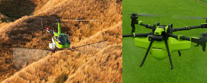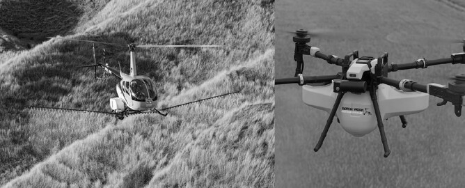 Rotor Work Limited can help you out with solutions for spraying small sensitive areas by providing expert advice on your best equipment for the job. We have access to both drones and light aircraft to perform the trickiest tasks in an environmentally responsible manner. Drones are used for extremely small jobs in sensitive areas requiring light water rates and can only be operated in line of sight. Light aircraft with specialised equipment fitted is used for small jobs where line of sight is not possible and for higher water rate spraying.