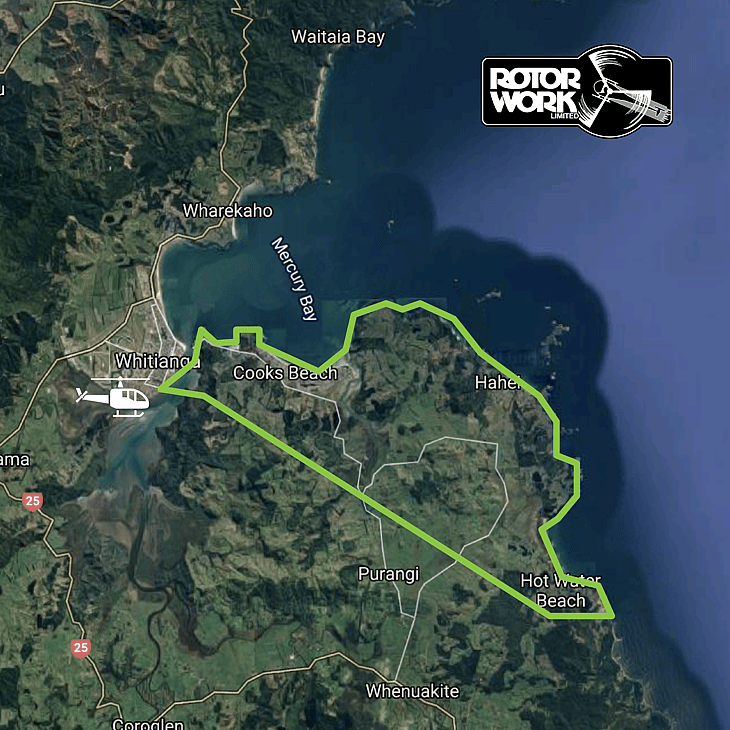 • Departs and returns from Rotor Work Base Whitianga Airfield.