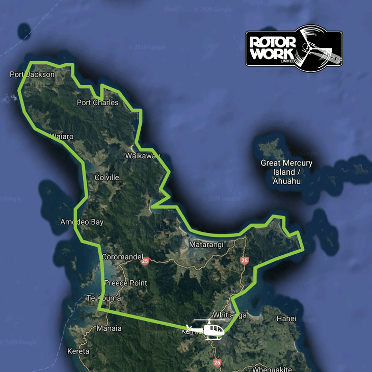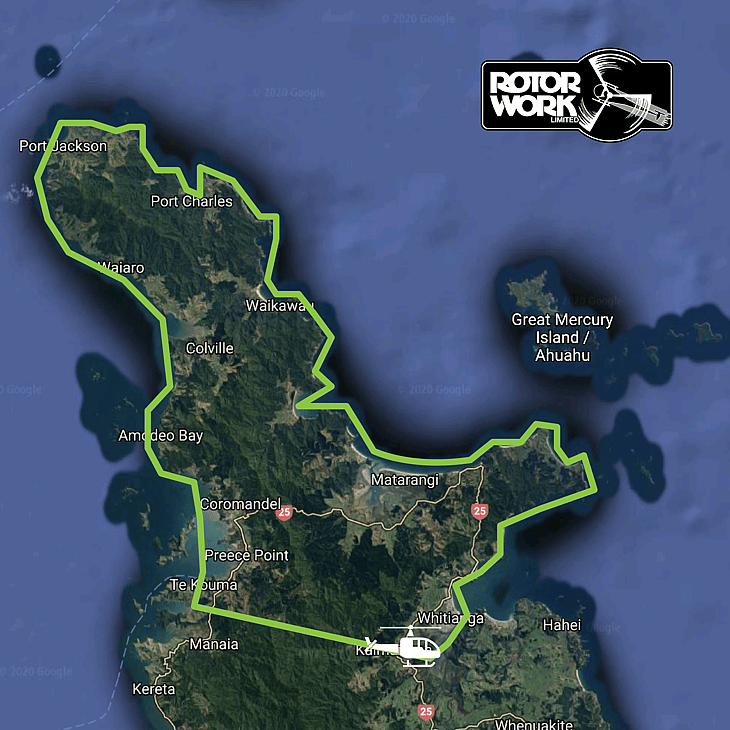 • Departs and returns from Rotor Work Base Whitianga Airfield.